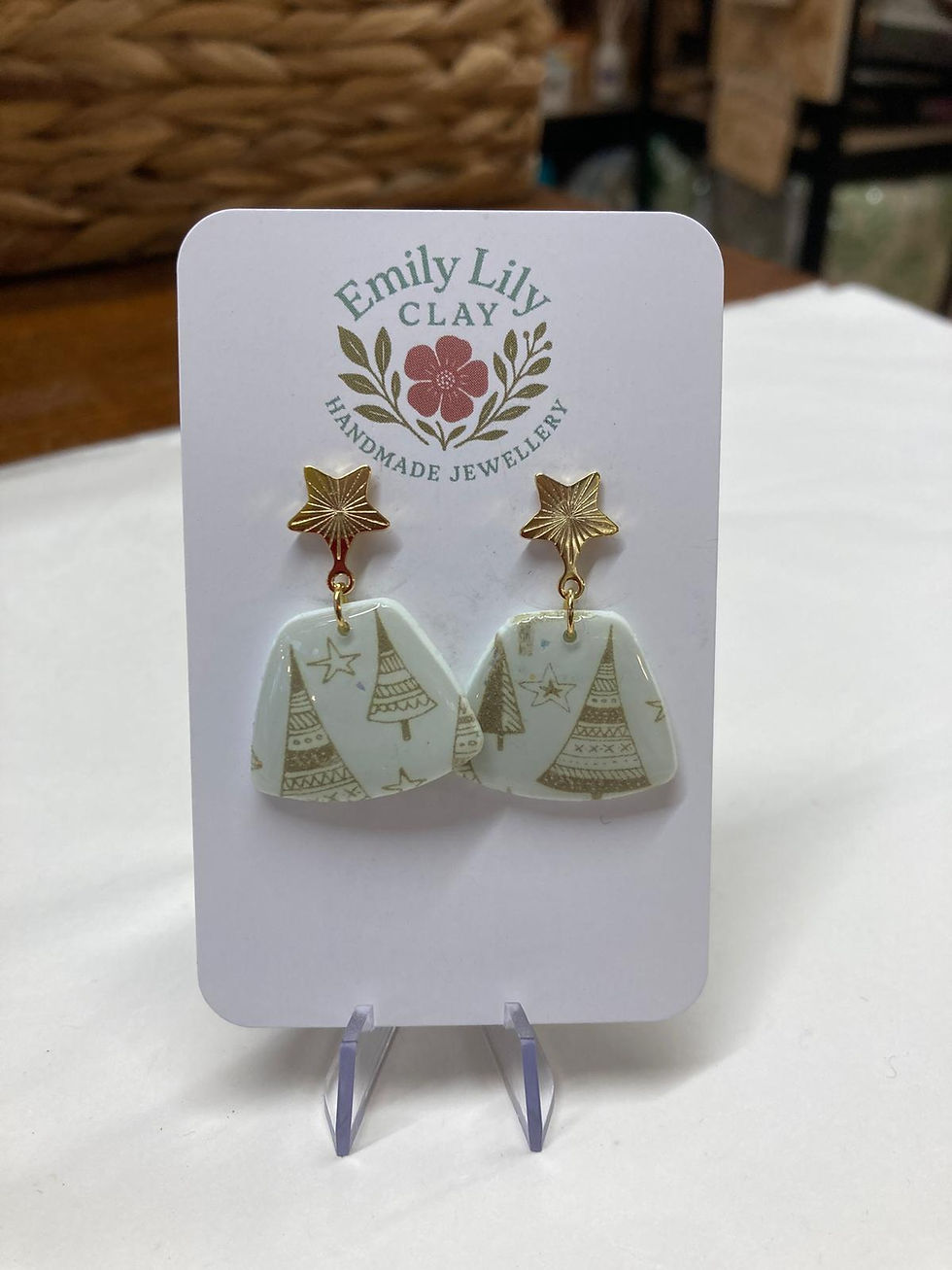 White Christmas Tree Polymer Clay Dangle Earrings