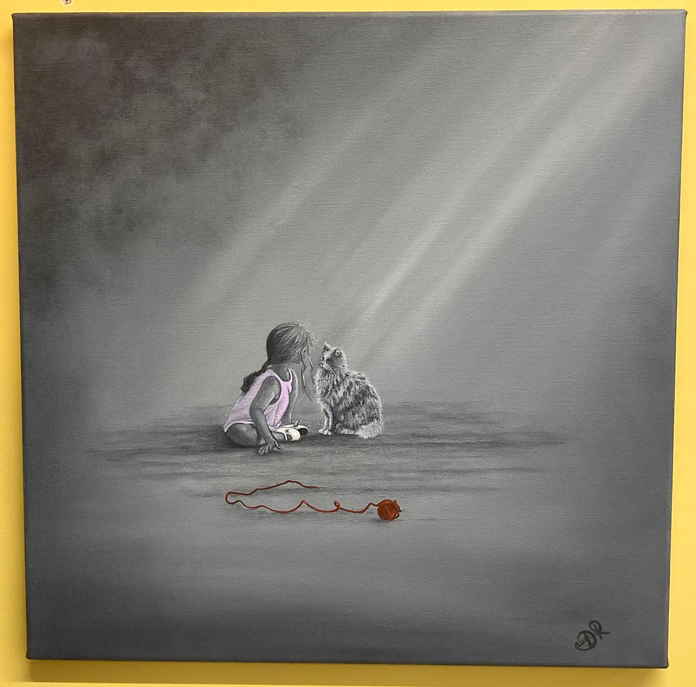 "A Secret Spilled" Little Girl with Cat Painting