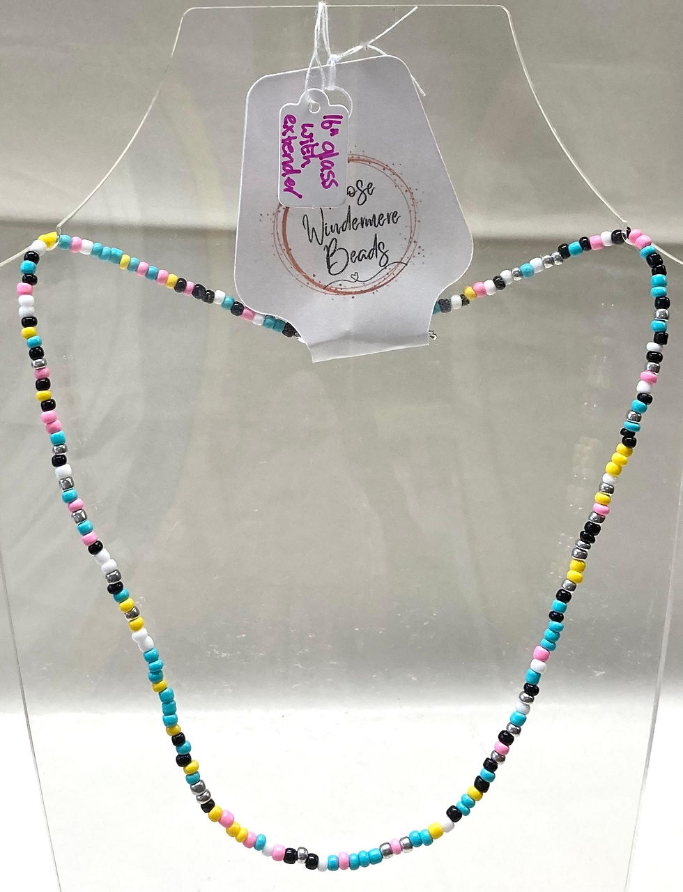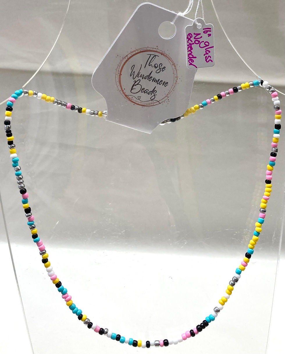Black White Blue Pink Yellow and Silver Seed Bead Necklace - 16