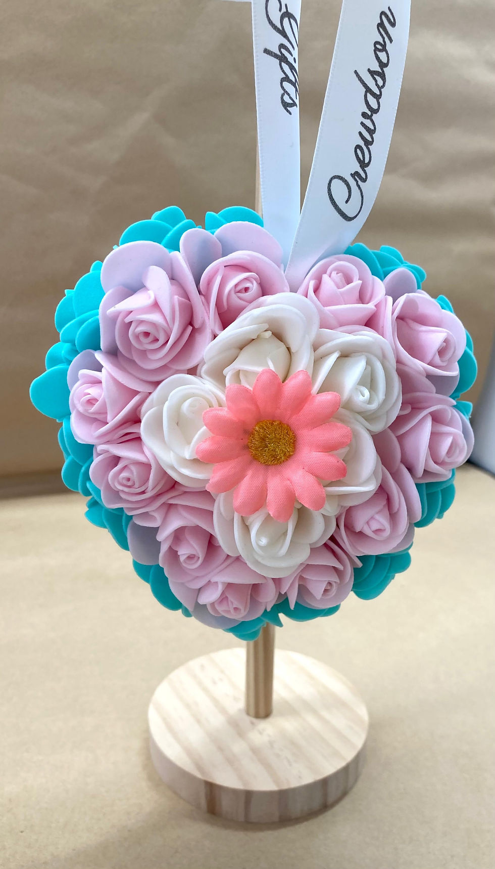 Pink White and Green Heart Car Decoration