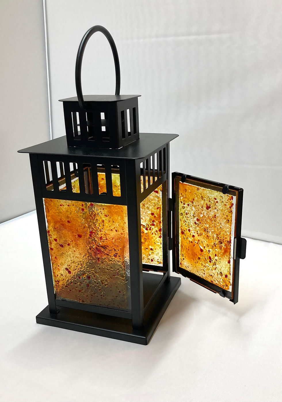 Orange Textured Fused Glass Lantern - Small