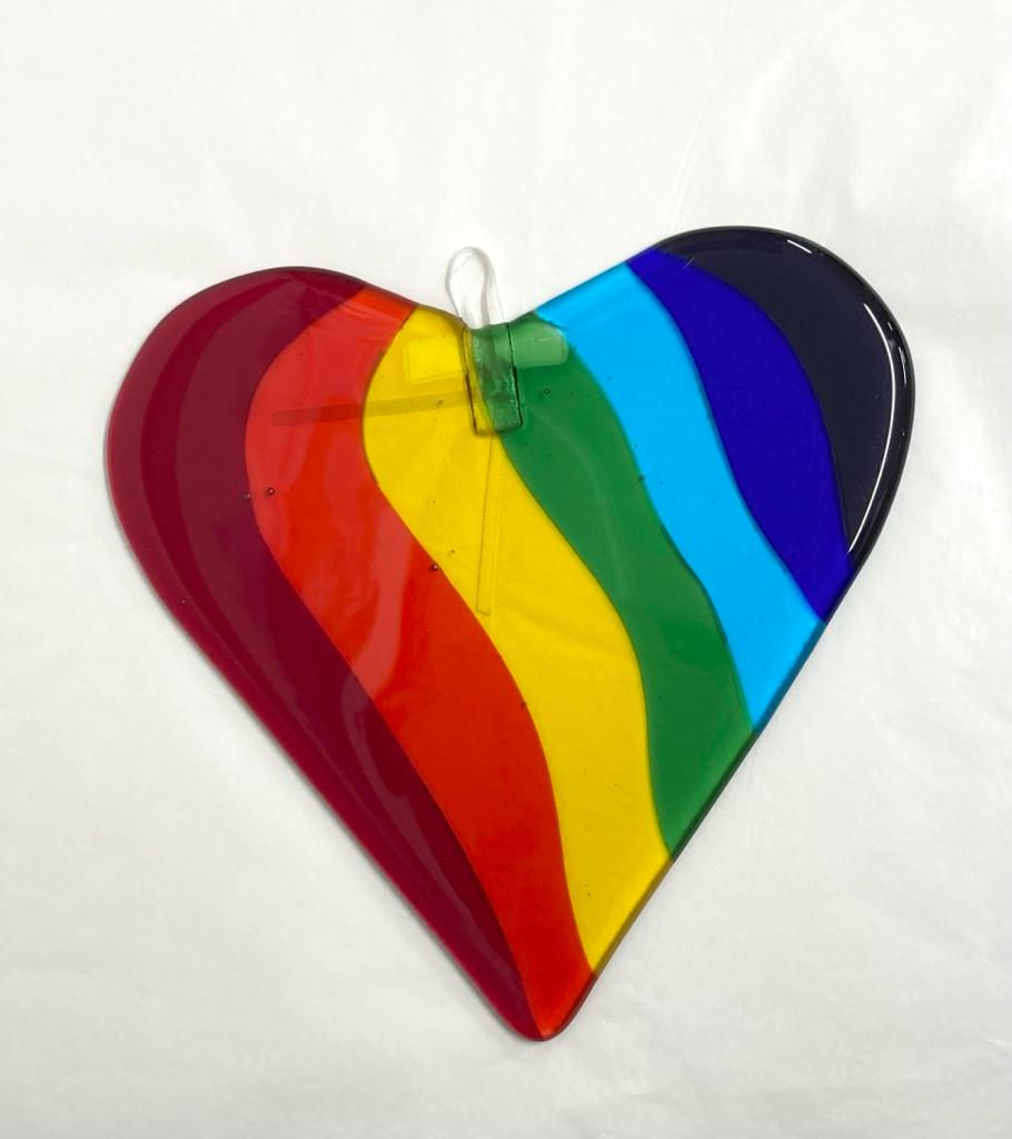 Red and Orange Fused Glass Heart with Metal Display Stand